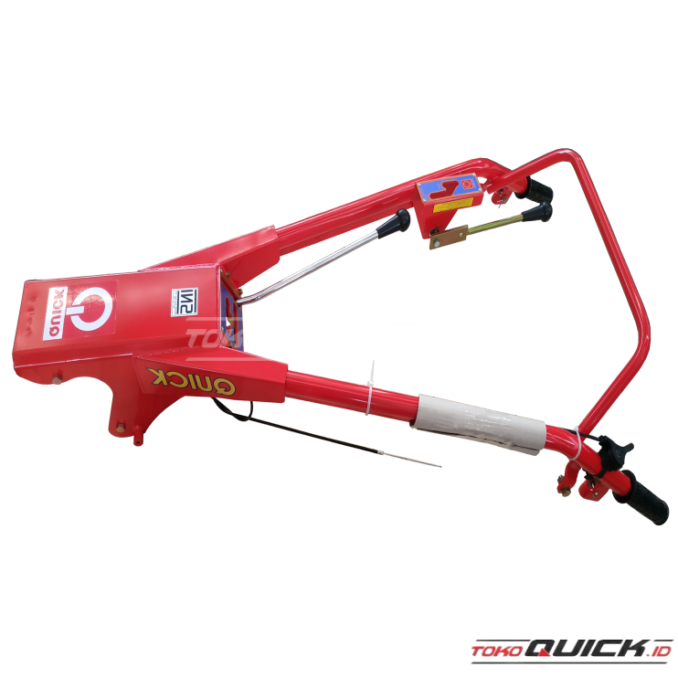 Stang, digunakan untuk mengatur arah jalan traktor Isi : HEAD OF HANDLE BAR --> (1 buah) FRONTSIDE SUPPORT PLATE (R) --> (1 buah) FRONTSIDE SUPPORT PLATE (L) --> (1 buah) REAR SIDE PLATE --> (1 buah) MIDDLE SUPPORT PLATE --> (1 buah) HINGE BUSH --> (1 buah) SIDE SUPPORT --> (2 buah) MAIN PIPE --> (2 buah) RIGHTSIDE MAIN PIPE SEAT --> (1 buah) MAIN PIPE SUPPORT PLATE --> (2 buah) MAIN PIPE SEAT PLATE --> (2 buah) SEAT BUSH --> (1 buah) SUPPORT PLATE SEAT --> (2 buah) CLUTCH HANDLE SEAT PLATE --> (2 buah) LEFTSIDE MAIN PIPE SEAT --> (1 buah) HANDLE --> (1 buah) DISC CLUTCH HANDLE HOUSING PLATE --> (1 buah) DISC CLUTCH HANDLE HS. REINFORCE --> (1 buah) HANDLE PIPE --> (2 buah) NUT (R2) M6x1.0 (5) 4-Y --> (4 buah) NUT (S2) M10x1.5 (8) 4-W --> (1 buah) BLIND RIVET DIA. 3.2x11 --> (8 buah) SPRING WASHER M6 (6.1x12.2x1.5) 7-Y --> (4 buah) BOLT (R) M6 X 1.0 X 20 7-Y --> (4 buah) CV. Karya Hidup Sentosa atau yang lebih dikenal dengan Quick Tractor merupakan perusahaan nasional terbesar dalam industri traktor tangan roda dua, traktor roda empat, dan traktor angkut di Indonesia. Didirikan pada tahun 1953 di Yogyakarta, saat ini Quick Tractor telah memiliki dua pabrik dan belasan kantor cabang di Indonesia. Dari segi produk, Indonesia boleh bangga denga karya anak bangsa yang telah berstandar internasional dengan sertifikasi ISO 9001.