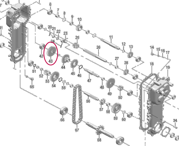 Gear perantara 37 gigi untuk pengaturan rasio tenaga menengah.