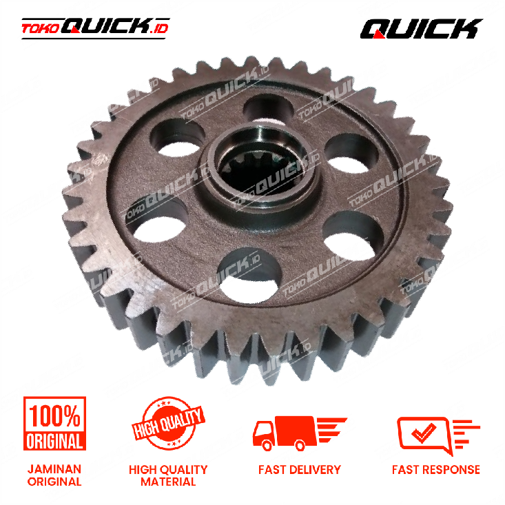Gear utama dengan 38 gigi, berfungsi menyalurkan daya dari poros penggerak ke transmisi.