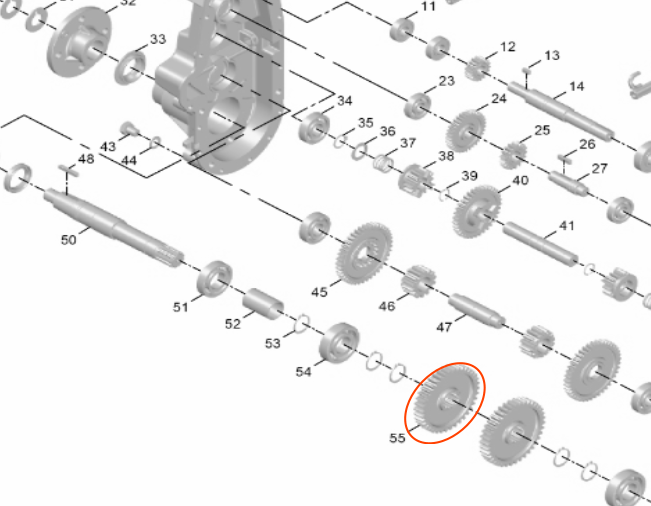 Gear utama berjumlah 38 gigi untuk reduksi torsi.