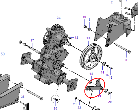 Lengan tensioner V-belt / stang penegang yang menjaga ketegangan belt pada unit G3000 Zeva. Sesuai listing online susunan spare part. (Lazada Indonesia)