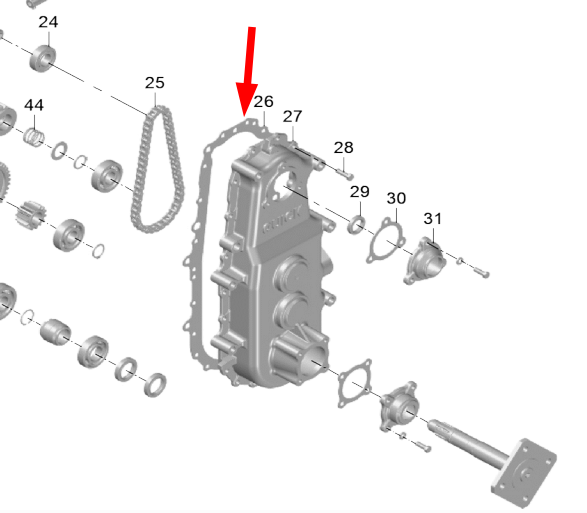 Gasket rumah gir (gear case) sebagai perapat utama pada gearbox.
